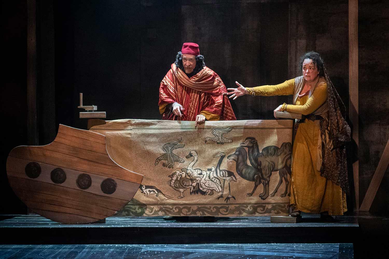 Starting in the 13th century, there were three major types of Medieval drama: Miracle, morality, and mystery plays. Miracle plays depicted the lives of saints. Morality plays were allegorical dramas where characters personify moral qualities such as charity of vice or abstractions such as death or youth. Mystery plays, also sometimes called “cycle plays,” retold biblical stories ranging from creation to the life of Jesus. The players in The Amateurs put on Noah’s Flood, an authentic Mystery play with written scripts dating back to the early half of the 15th century. Set in the 14th century, playwright Jordan Harrison imagines the early creation of the Noah’s Flood text by a group of traveling actors.