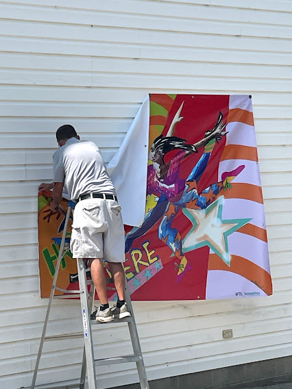 First, during Just Arts: A Celebration of Arts and Activism, we commissioned local muralist and activist Lusmerlin Lantigua to facilitate the creation of a community artwork and express what "coming together through the arts" meant to the attendees.