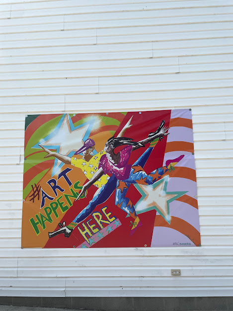 Finally, the Arts and Humanities Council of Montgomery County (AHCMC) celebrated the County’s cultural reopening with a call for public art, matching muralists to local arts organizations. Using the hashtag #artshappenshere, AHCMC’s program forges a symbiotic relationship between disciplines. OTC selected a design by muralist Arlette Jassel, which has been installed on the wall of the scene shop along the walkway to the newly renovated Mulitz-Gudelsky Theatre Lab from the back parking lot. Do take a moment to check it out next time you are on our campus; you might soon have a chance to purchase items in our gift shop with Arlette’s image!