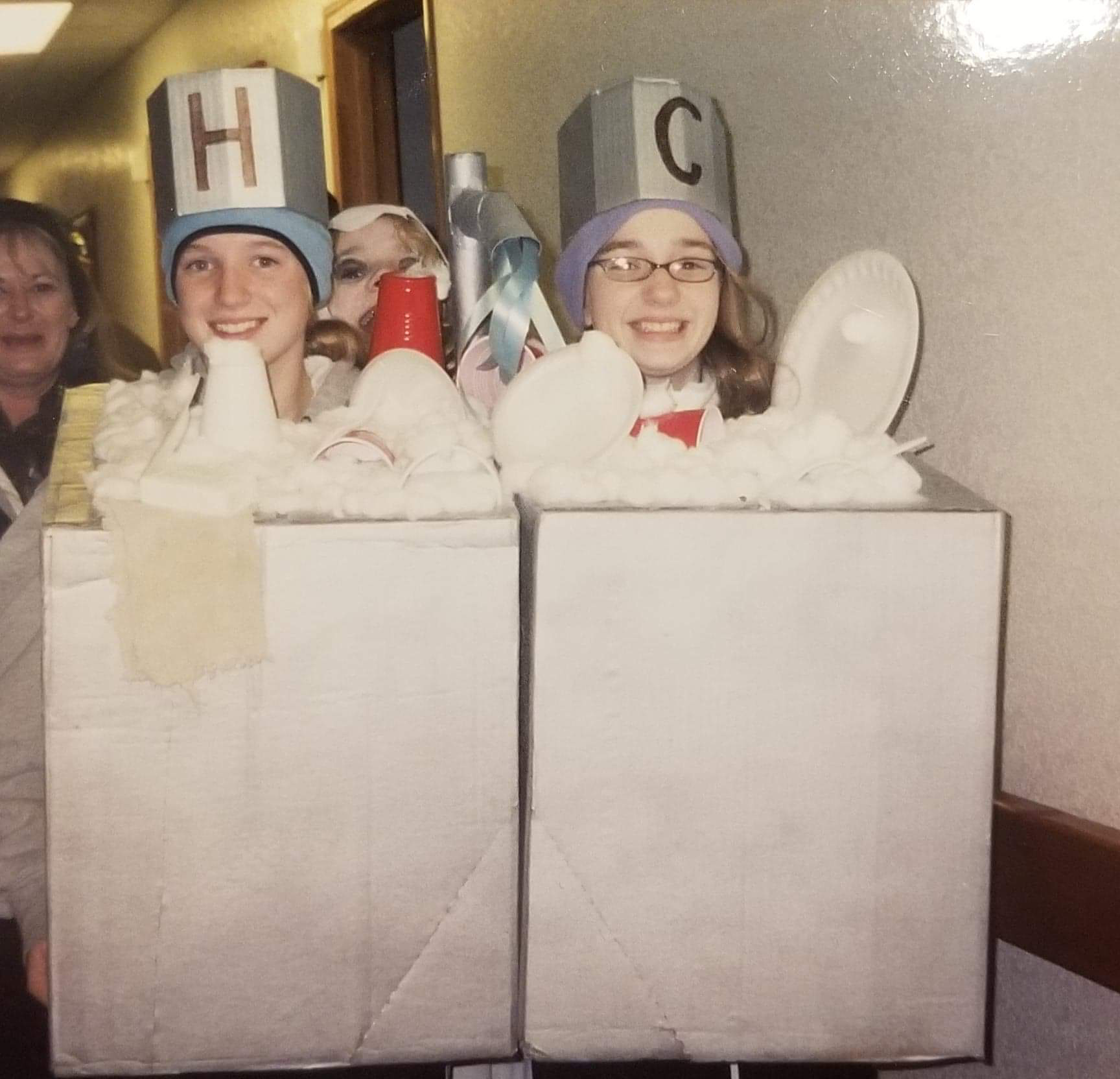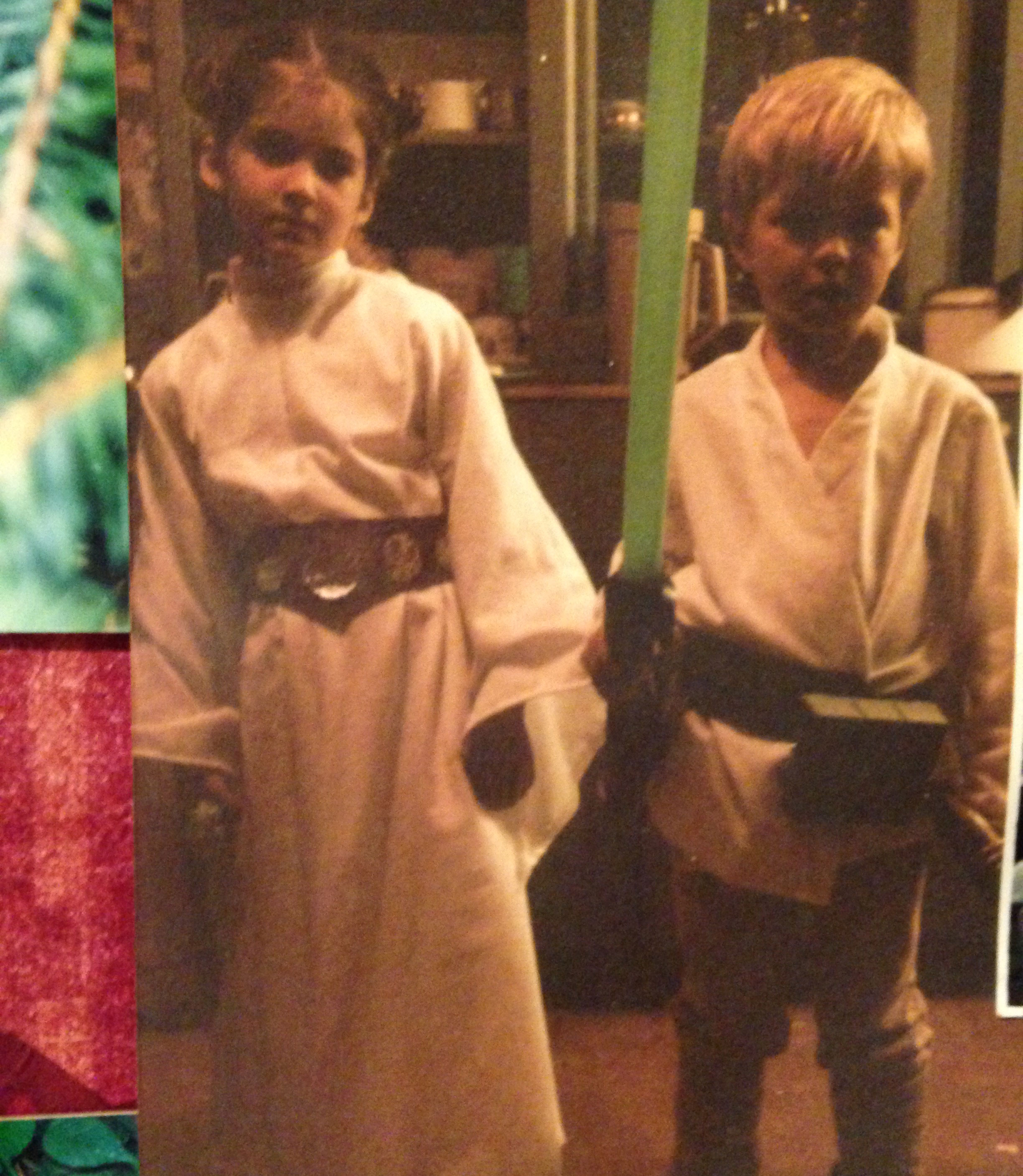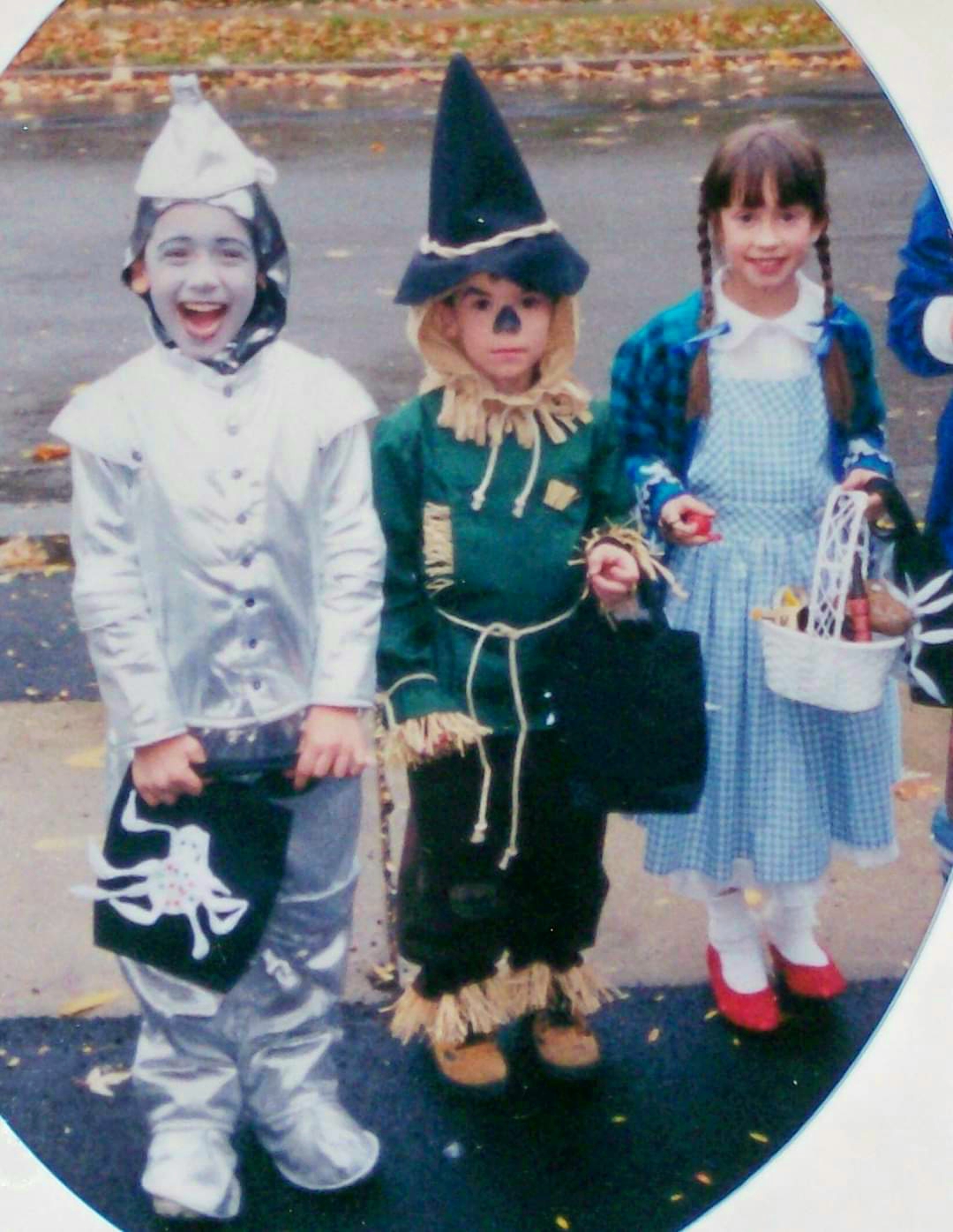 In 1999, when I was in kindergarten, my mom thought it would be cute if my siblings and I wore coordinating costumes. We decided on The Wizard of Oz and my mom made all of our costumes from scratch! I'm the tin man, my twin brother is the scarecrow, and my older sister is Dorothy.