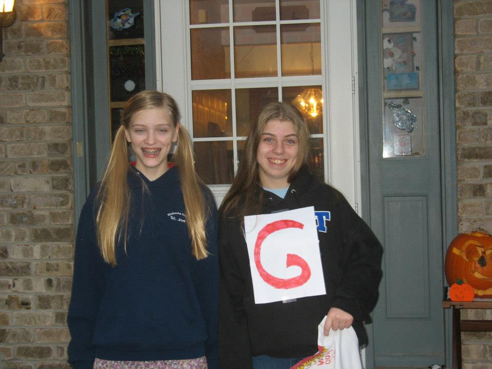 I'm from Wisconsin, so we always had to dress in layers (Halloween was usually anywhere from 30 - 55) (the worst years were when we had to wear snow pants to keep warm), so that year I took a sheet of computer paper, drew a G on it, and taped it to my shirt.