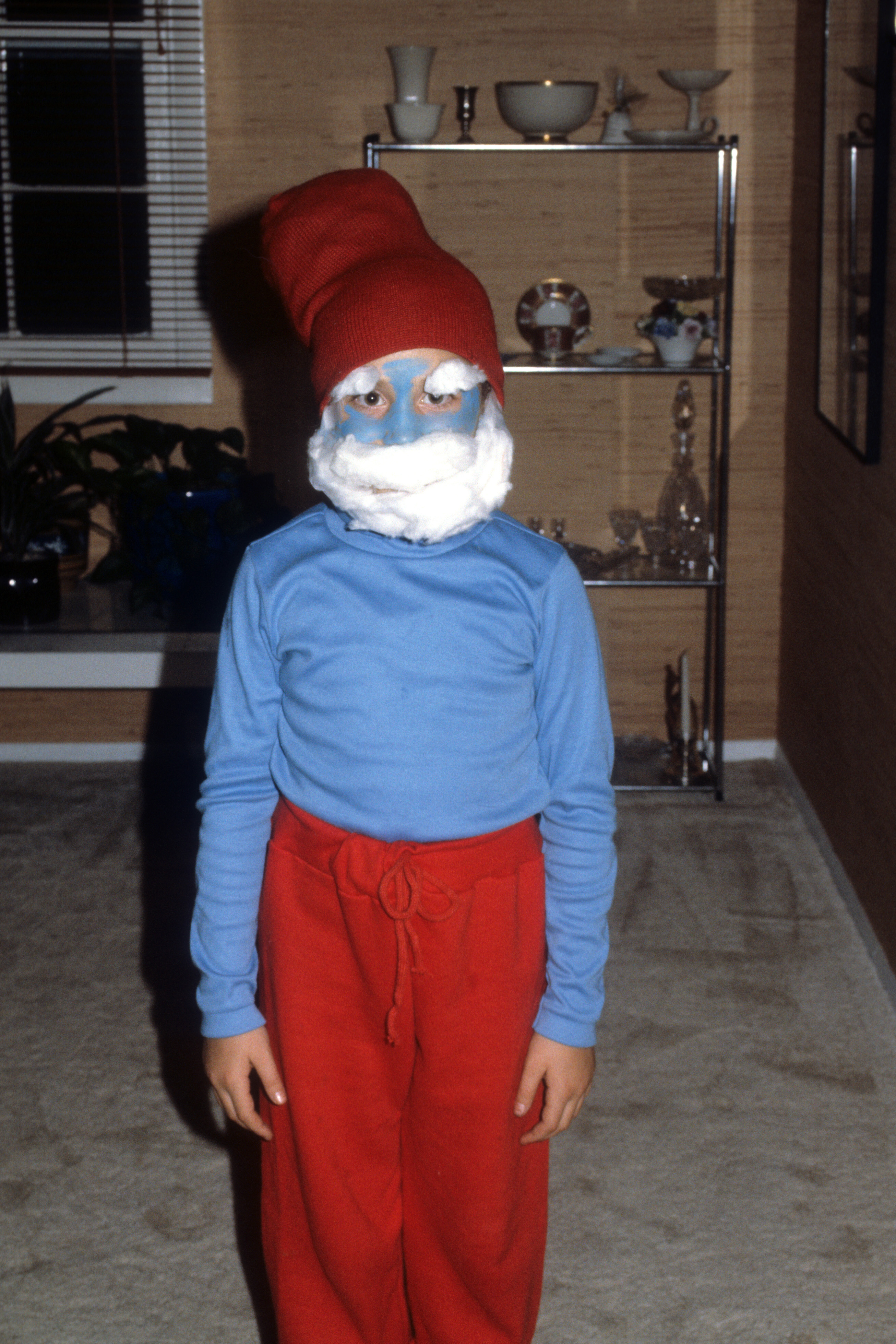This is hilarious because just this weekend, I found this photo of me from Halloween 1980 (age 6). I'm Papa Smurf for the under 40-somethings who may not be familiar with that iconic cartoon. :)