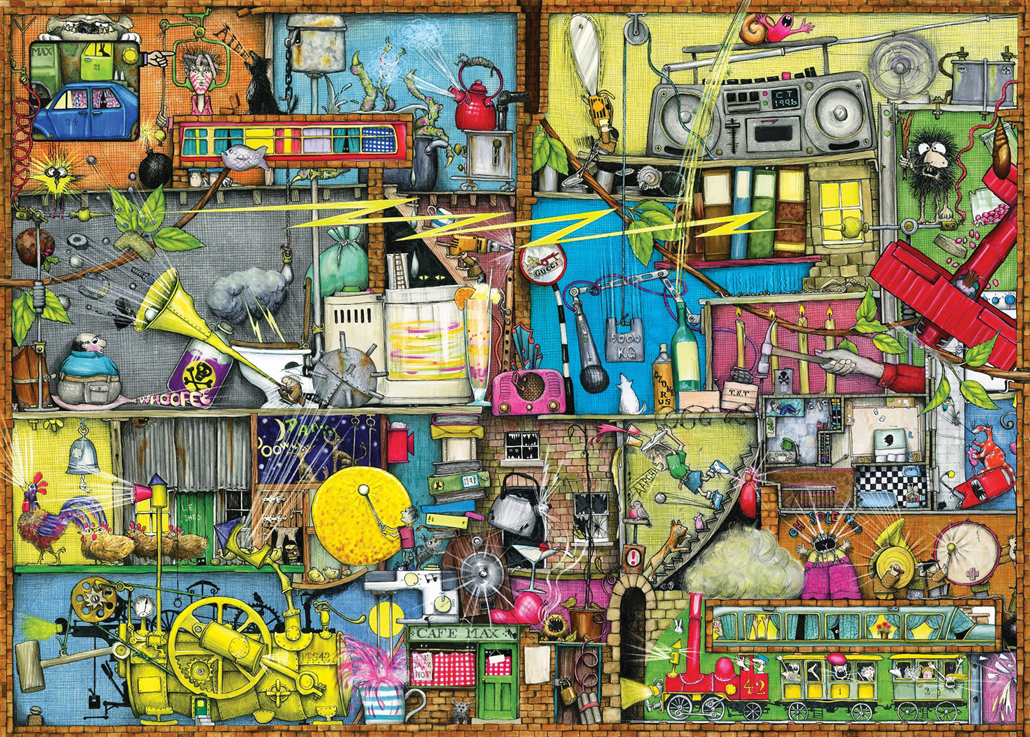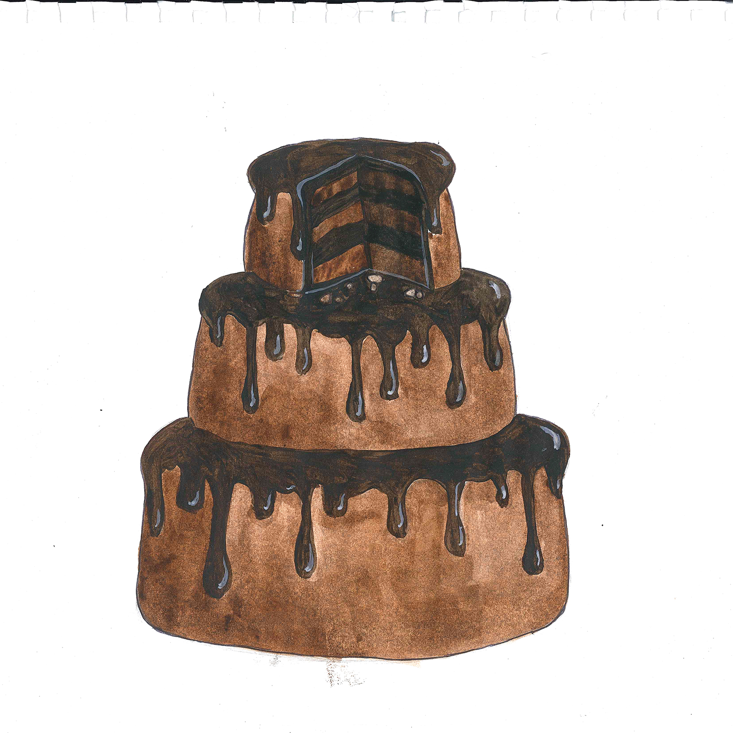 The creative team approved the action of the cake book, so I moved onto its design. Milagros Ponce de León, our scenic designer, was influenced by the quirky and highly detailed illustrations of Colin Thompson. Using his work as inspiration, I painted each iteration of the chocolate cake with watercolors. The paintings themselves were barely ten inches tall, so I scanned them into the computer, enlarged them in Photoshop, then printed them on our large format printer.