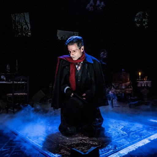 A friendly one-man show (Morella, in a Victorian suit, greets you at the door) that faithfully sticks to the Dickens novella over its swift two hours. What you hear is exactly what Dickens wrote, rich descriptions and all. This was originally a ghost story, and that’s how it feels as Morella stands alone on a shadowy stage, looking you in the eye as cranky old Ebenezer Scrooge begins his jittery night. - The Washington Post