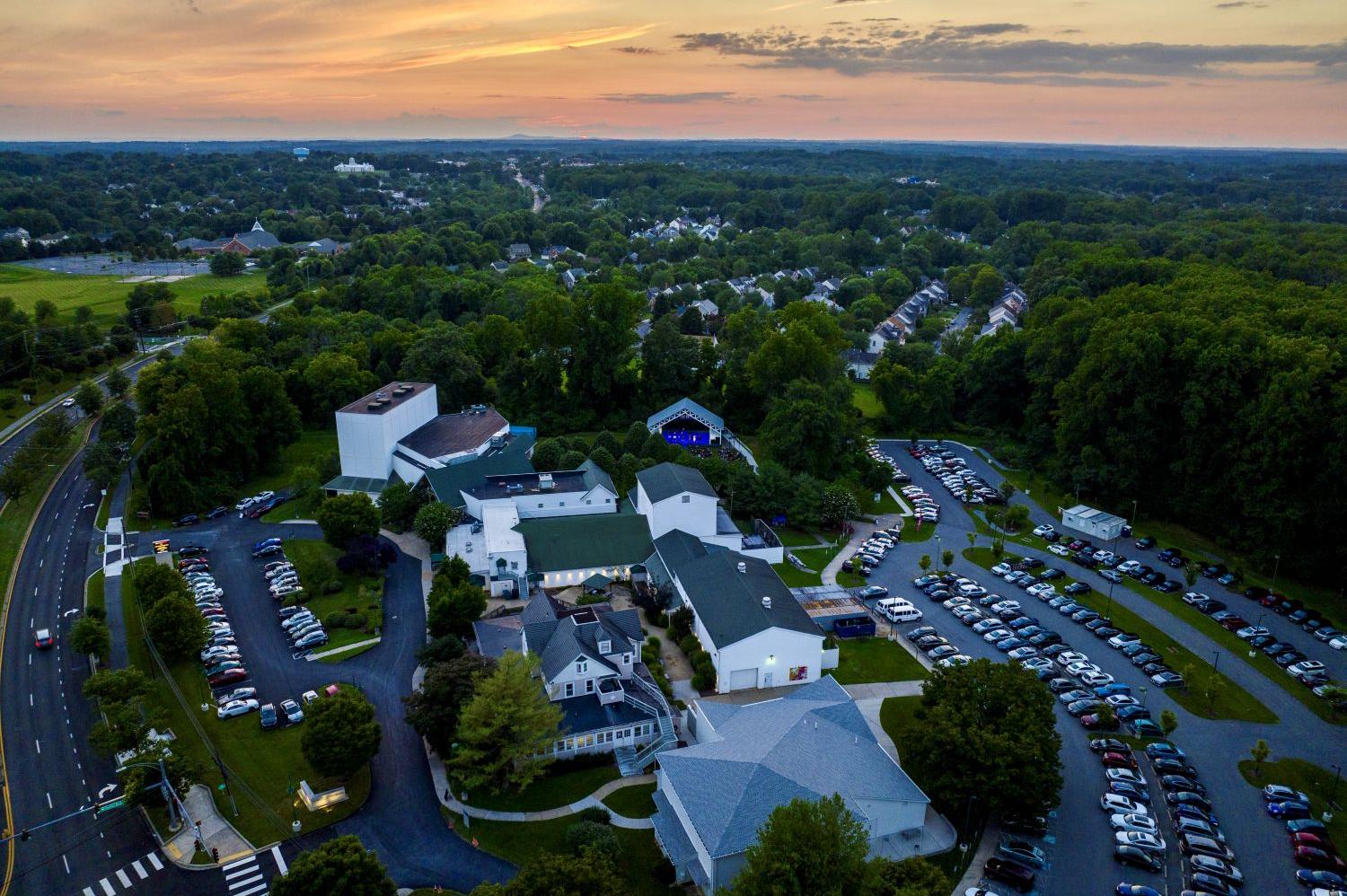 Olney Theatre Center has a small front lot facing Route 108/Olney-Sandy Spring Road, and a much larger rear lot which is accessed by turning right after entering the driveway from the traffic light. Reserved spaces for those with mobility issues are in the rear lot in two locations - one near the Mulitz-Gudelsky Theatre Lab and one near the path to the Roberts Mainstage and the Root Family Stage at Omi's Pavilion. For those escorting patrons with mobility issues, there is a drop-off zone on the Route 108/Sandy Spring side of the Roberts Mainstage and Bernard Family Theatre, which can be accessed prior to parking. When several performance venues are in use at the same time, we may ask you to park at our overflow location across the street at Our Lady of Good Counsel High School, and take our free shuttle back to campus. (See campus maps below).